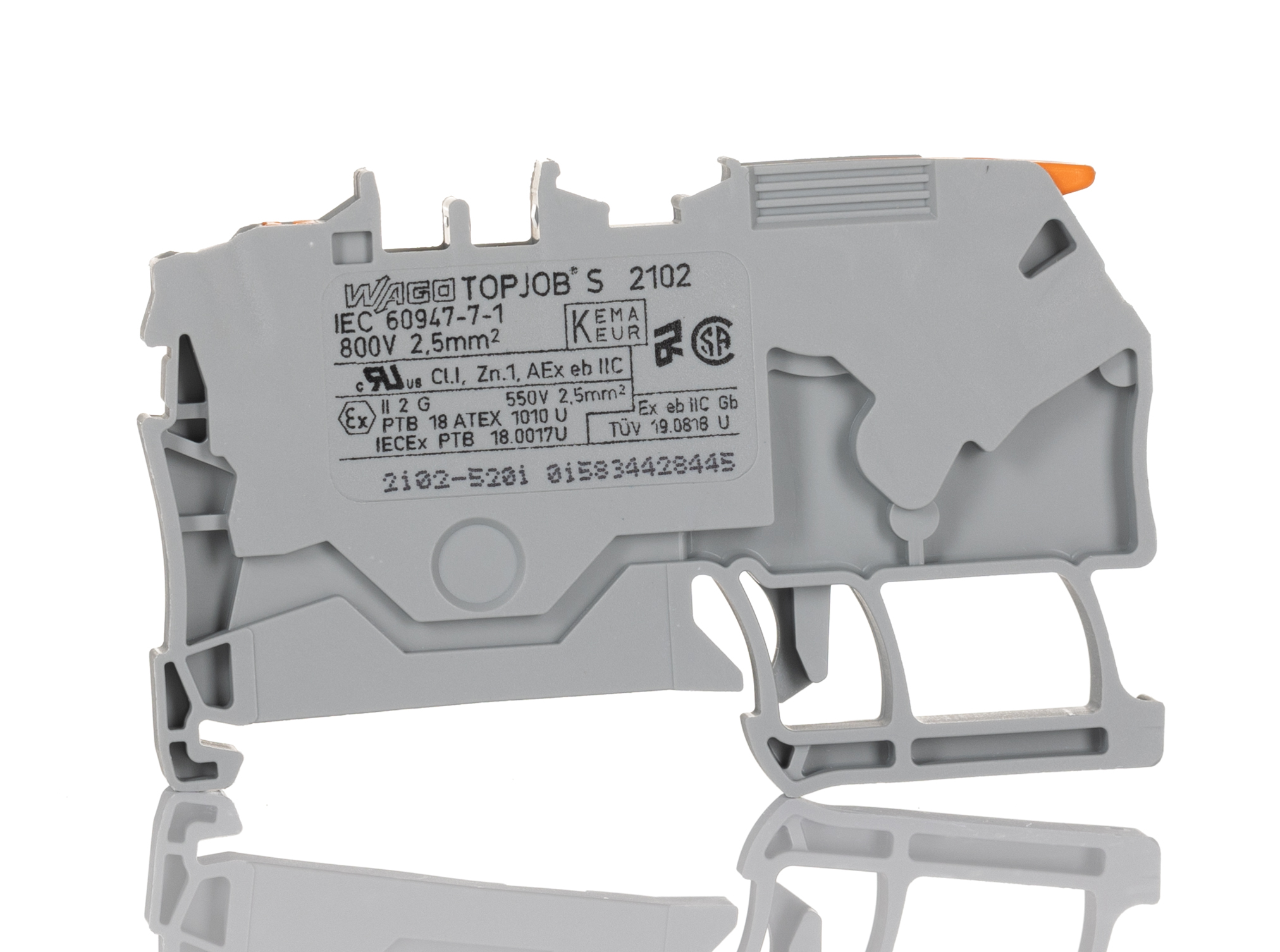 Blok zacisków przelotowych WAGO poziomy: Pojedynczy 22 → 12AWGWciskany zacisk Cage Clamp TOPJOB S, 2102 raster: