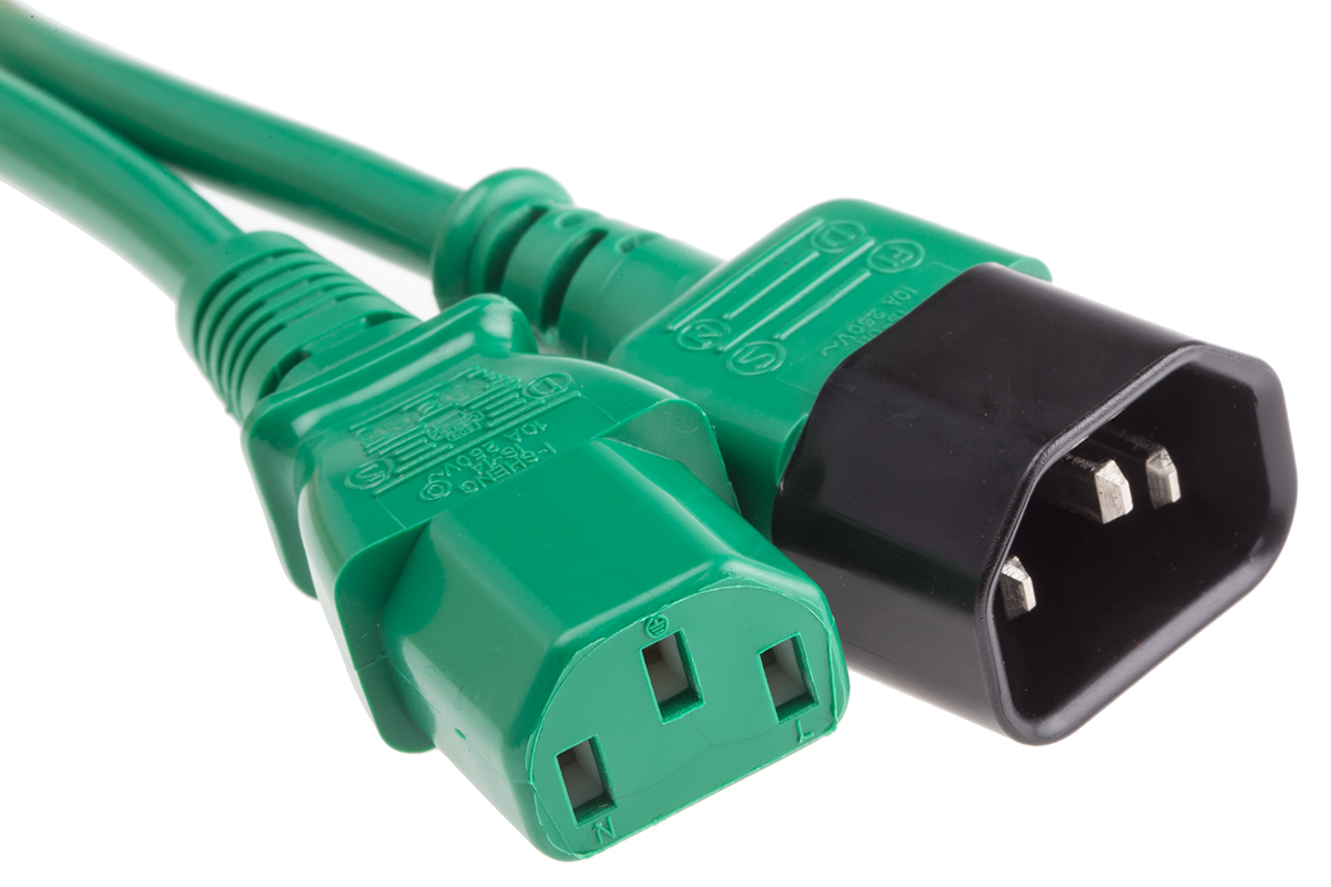 Przewód zasilania złącze A: IEC C13 złącze B: IEC C14 1m 6 A 250 V 0,75 mm2 Zielony