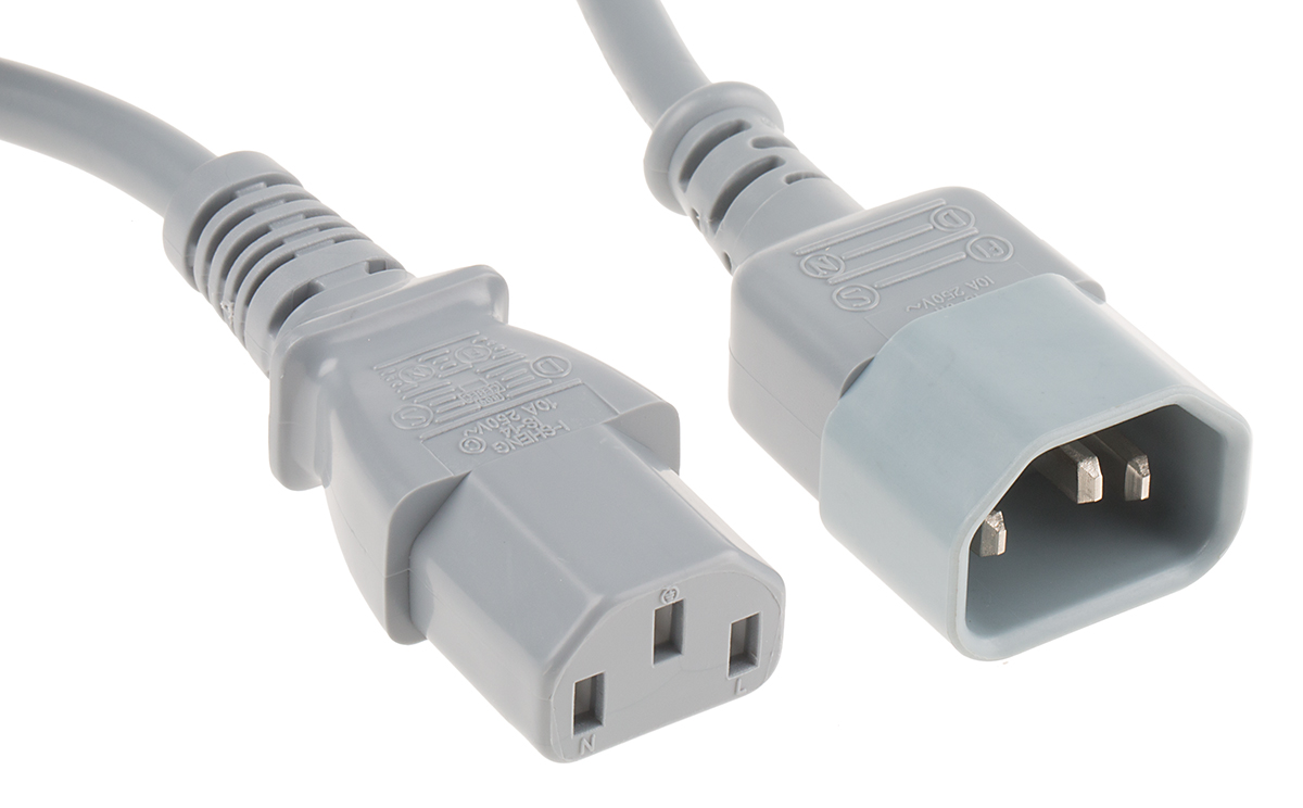 Przewód zasilania złącze A: IEC C13 złącze B: IEC C14 1m 6 A 250 V 0,75 mm2 Szary
