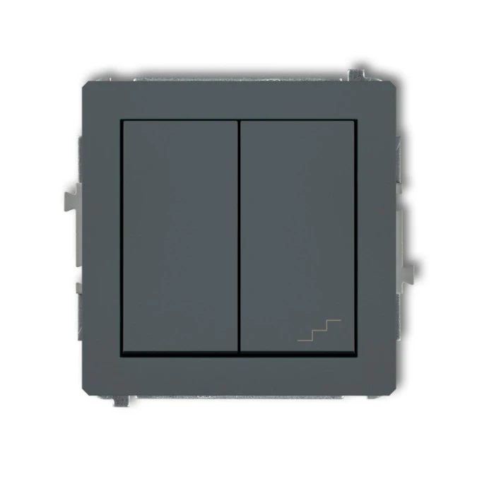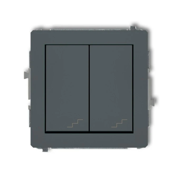 DECO Wyłącznik schodowy podwójny (dwa klawisze bez piktogramów) grafitowy mat 28DWP-33.1 KARLIK
