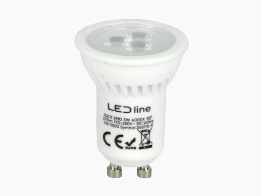 10. LED line PRIME żarówka LED GU11 3W 4000K neutralna 330lm CERAMICZNA 38st. 5 lat gwar. 15.13