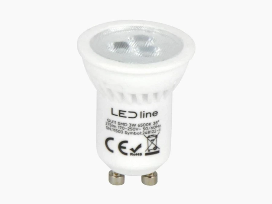 LED line PRIME żarówka LED GU11 3W 6500K zimna 330lm CERAMICZNA 38st. 5 lat gwar.