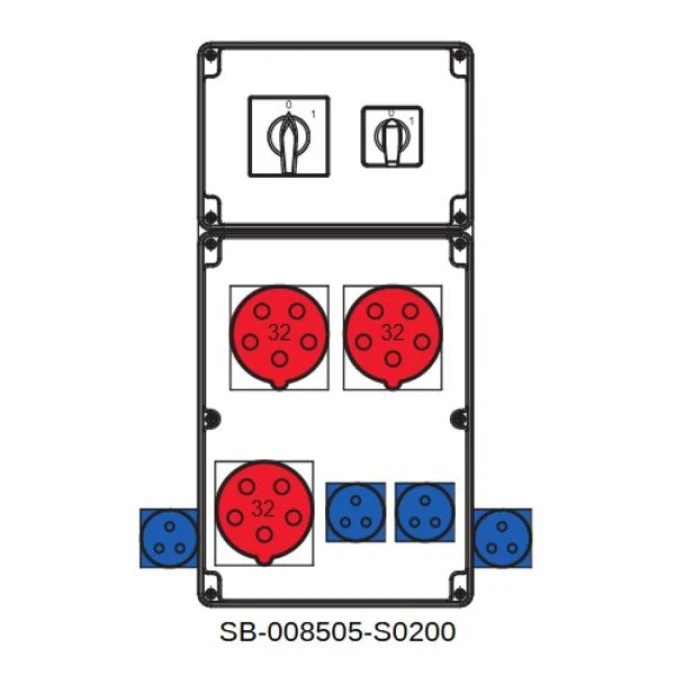 Rozdzielnica 0-1(32A) 0-1(16A) 3x5x32A 2x3x16A INA=32A IP54 SB-008505-S0180-54