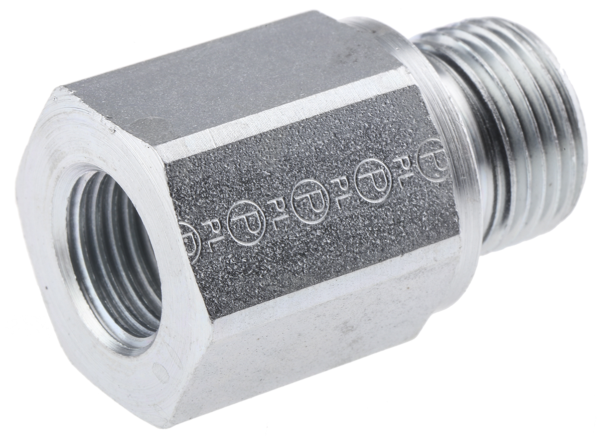 Hydrauliczny reduktor gwintowany prosty, Złacze A: BSPP męski, Złacze B: BSPP żeński, Stal, 400bar