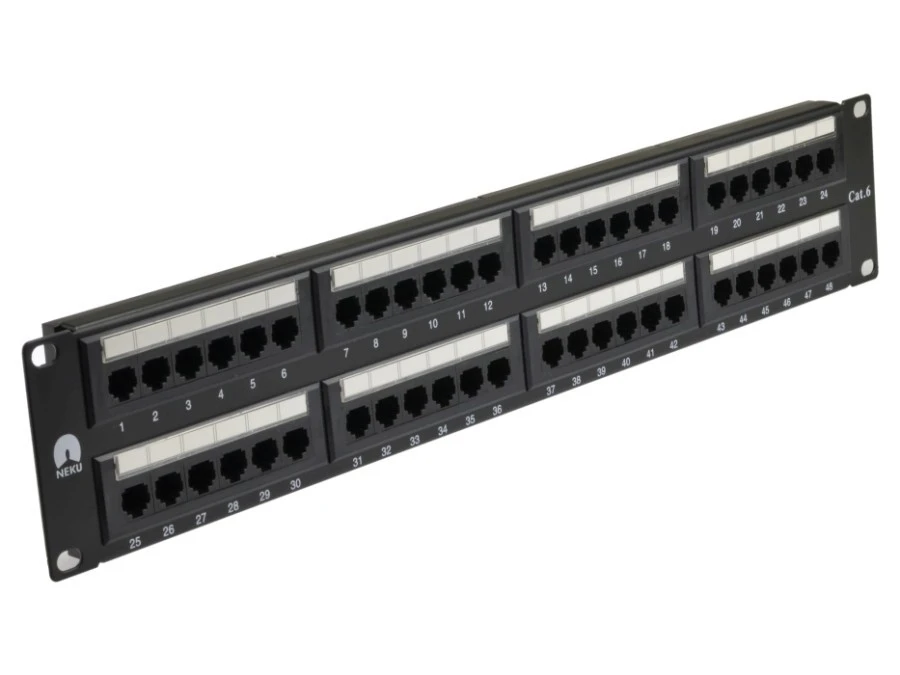 Patch panel RACK 19" kat.6 48p UTP 2U czarny NEKU