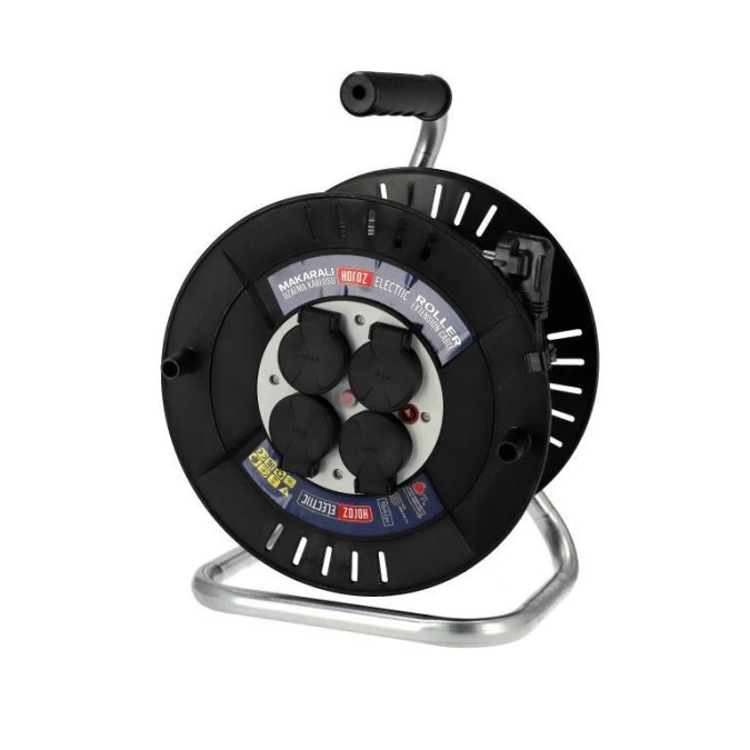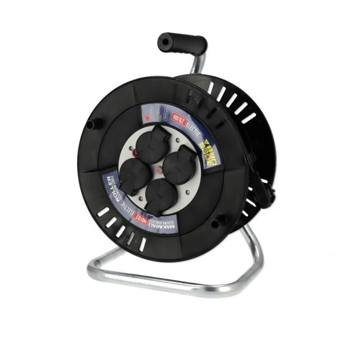 9. Przedłużacz bębnowy 4-gniazdowy ,IP44, czarny, 3X1,5mm, 20m HOROZ ELECTRIC 118.55