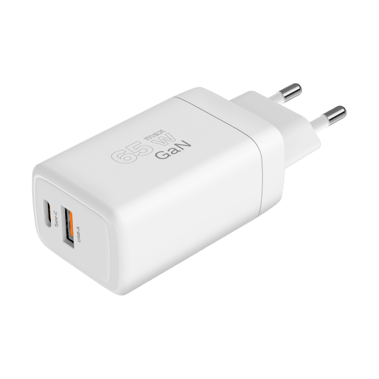 Ładowarka sieciowa GaN 1x USB typ-A Quick Charge 3.0 + 1x USB typ-C Power Delivery 3.0 [65W]