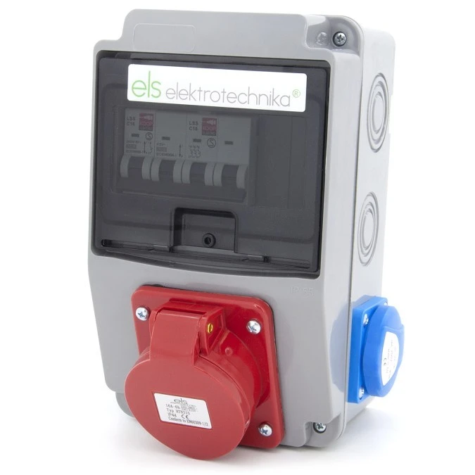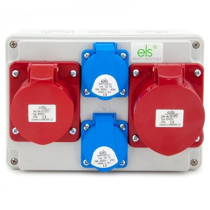 Rozdzielnica budowlana 32A/5P + 16A/5P + 2*GS 230V, obudowa naścienna, ELS Elektrotechnika, N211