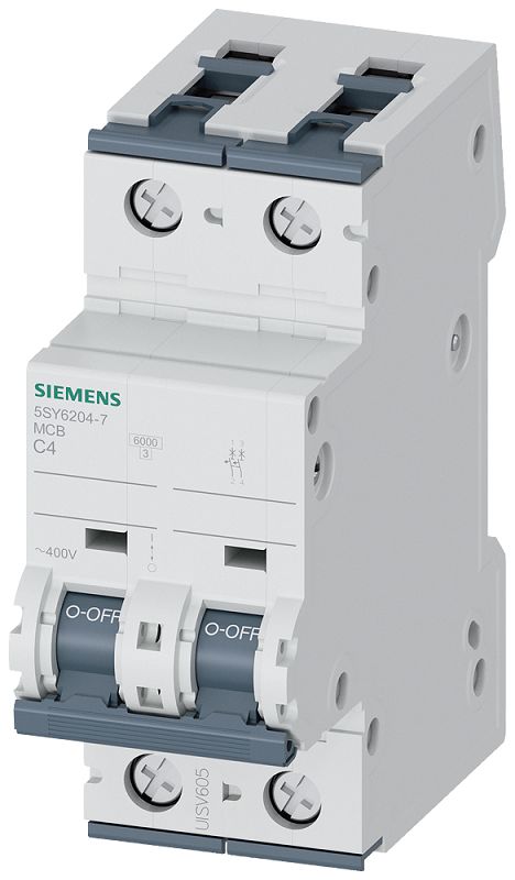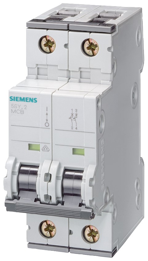 8. Wyłącznik nadprądowy MCB, Typ C, 2-biegunowy, 4A, 400V, 72V, na szynę DIN, Siemens, 5SY6 310.24