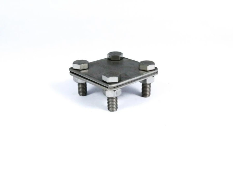 Złącze krzyżowe bednarka-bednarka, 4xM8 nierdzewne