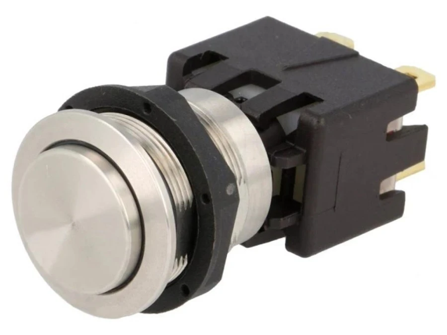 9. Vandal-proof pushbutton switch, 2 pole, silver, unlit , 12 A/250 V, mounting Ø 19.1 mm, IP65, 1241.6821.1120000 103.41
