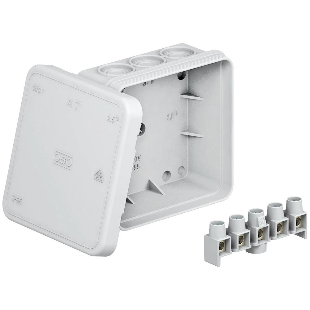 1. OBO Bettermann 2000326 Junction Box 85x85x40mm Grey IP54 12 Cable Inserts 37.50