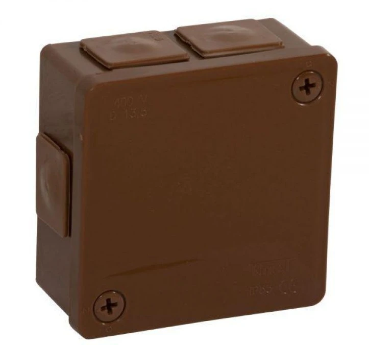 Puszka hermetyczna natynkowa 86x86x40mm 4-wlotowa, z dławikami gumowymi, IP55 zamknięcie na wkręty, brązowa EDO