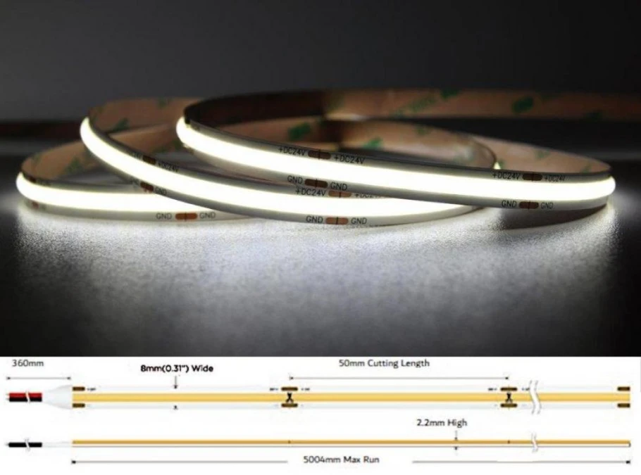 Taśma LED 8mm COB biała 5000K 880lm/m 24V 8W/m ...