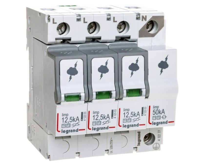 Ogranicznik przepięć SPD 3-fazowy B+C (Typ 1+2) 4P 12,5kA + 20kA/50kA Legrand 412273