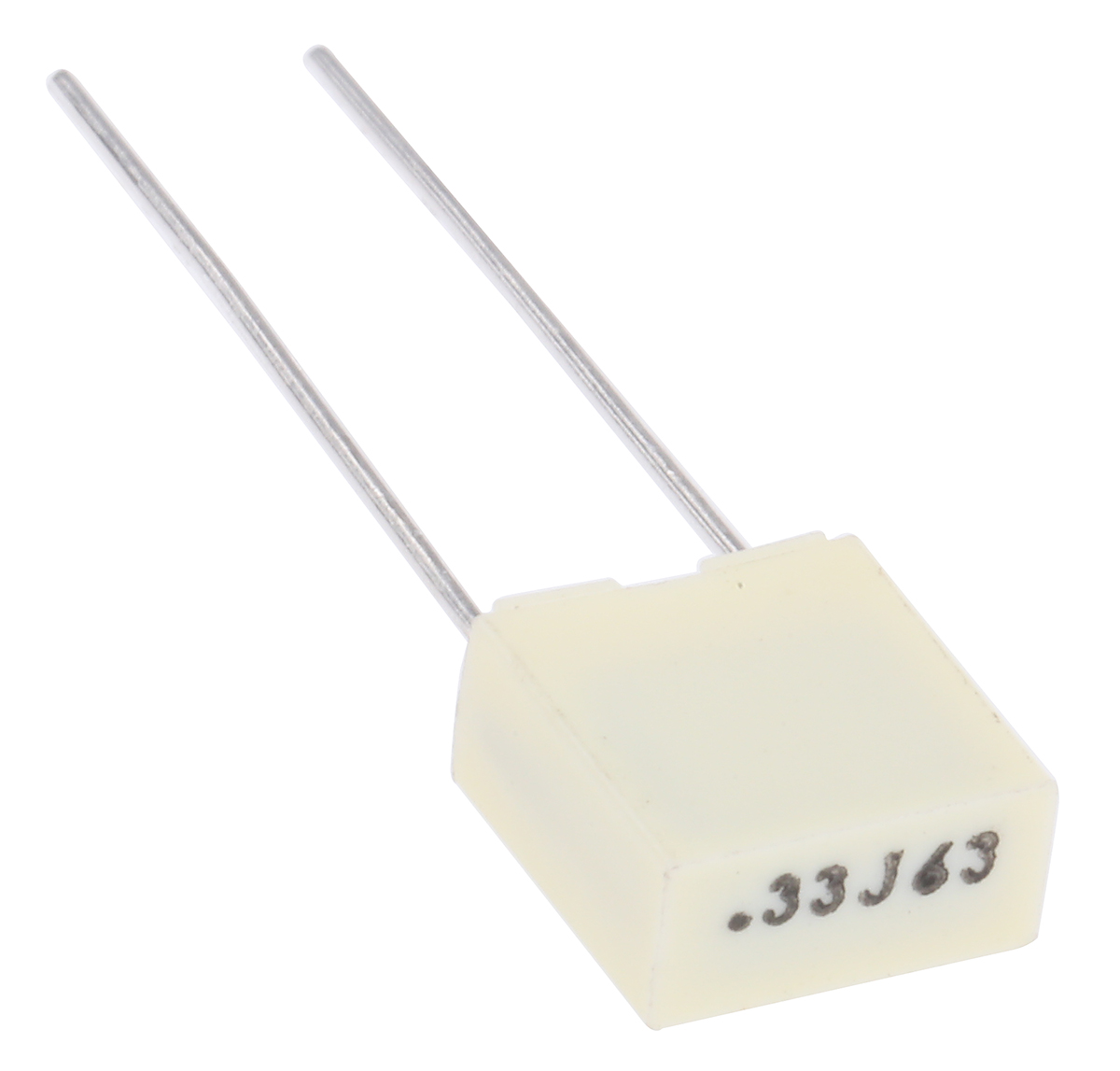 6. Kondensator foliowy 330nF 40 V ac, 63 V dc KEMET Poliester rozstaw: 5mm THT ±5 1.15 x10