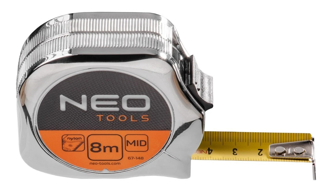 Miara zwijana metrówka 8m / 25mm magnetyczna wzmacniana czarno-pomarańczowa NEO 67-188