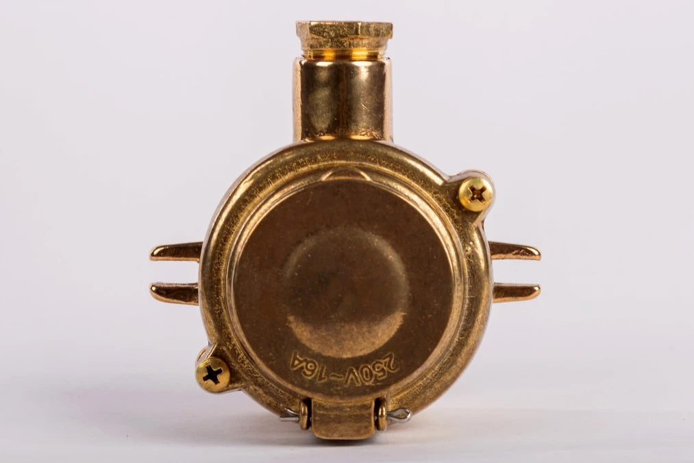 Solidne, mosiężne gniazdo natynkowe z pokrywą. ...