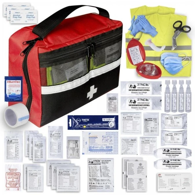 Apteczka pierwszej pomocy samochodowa bogato wyposażona wesja PRO czerwona MEDAID