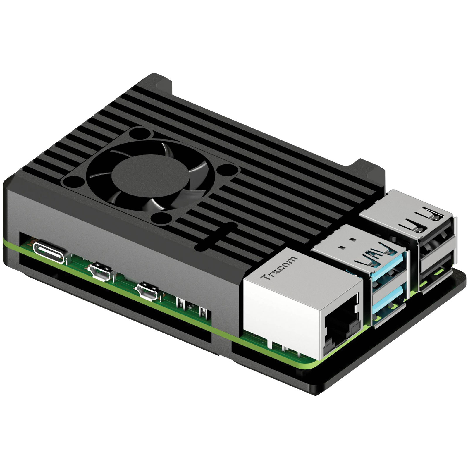 Housing for Raspberry Pi 4, aluminium, fan, black