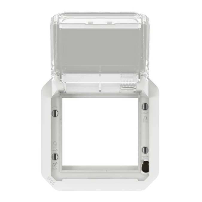 NOWE PLEXO 55 Adapter Arteor/Mosaic z przeźeoczystą klapką mechaniczną 70,5x70,5mm biały 069695L