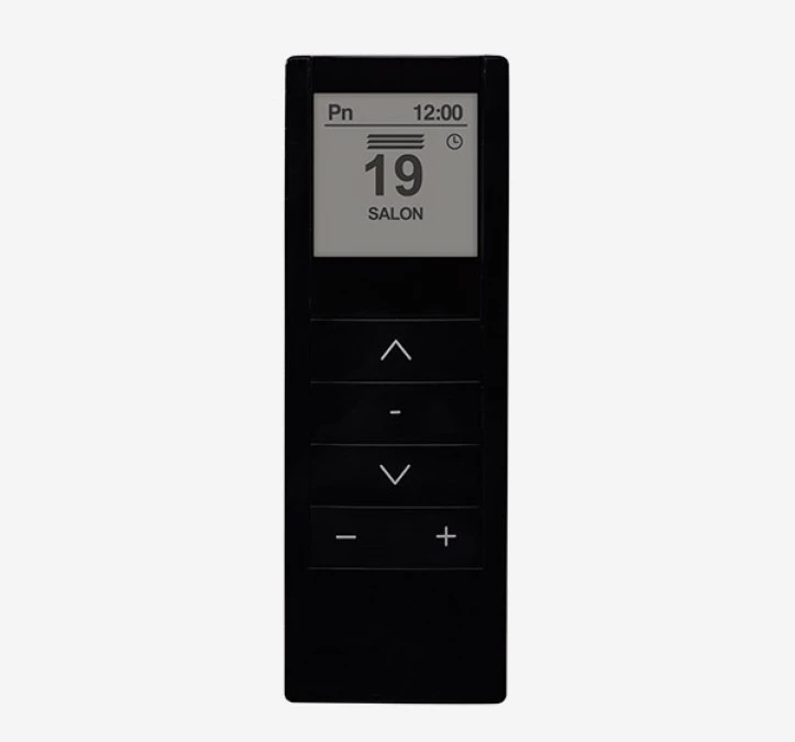Dziewiętnastokanałowy pilot wyposażony w czytelny, podświetlony wyświetlacz graficzny pokazujący numer kanału oraz posiadający m