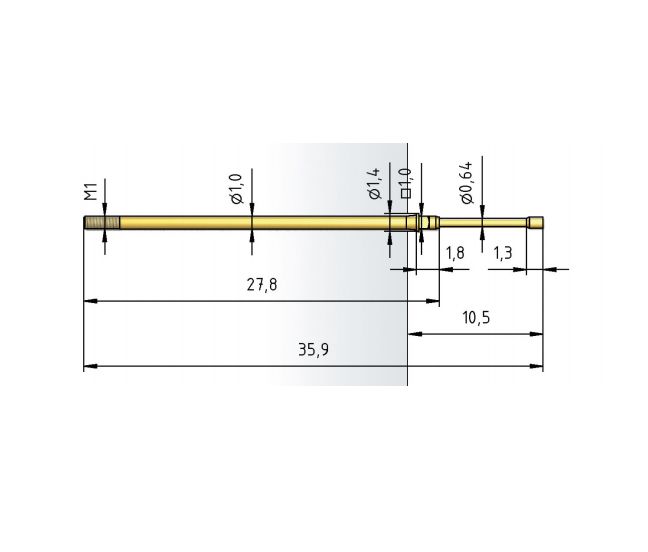 8. Igła testowa 2053-Y1F-1.5N-AU-1.5X0.58X2.8, raster 2,54 (100 mil) 10.81