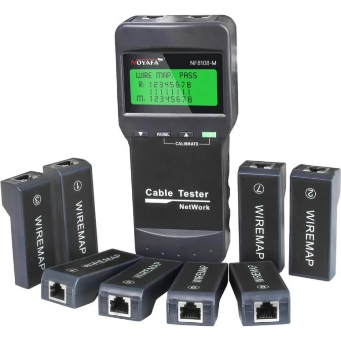 Tester kabli sieciowych LAN RJ45 z wyświetlaczem LCD w zestawie z 8 terminatorami NOYAFA NF-8108M