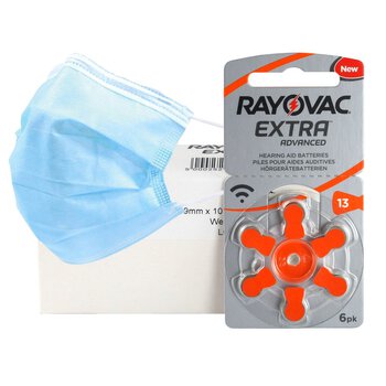 60 x baterie do aparatów słuchowych Rayovac Extra Advanced 13 + 10x jednorazowa maseczka 3-warstwowa chirurgiczna