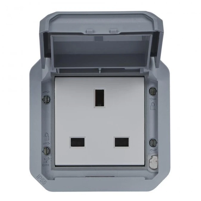 10. NOWE PLEXO 55 Gniazdo standard brytyjski 2P+Z zaciski śrubowe mechanizm 13A - 250V AC szare 069585L 34.45