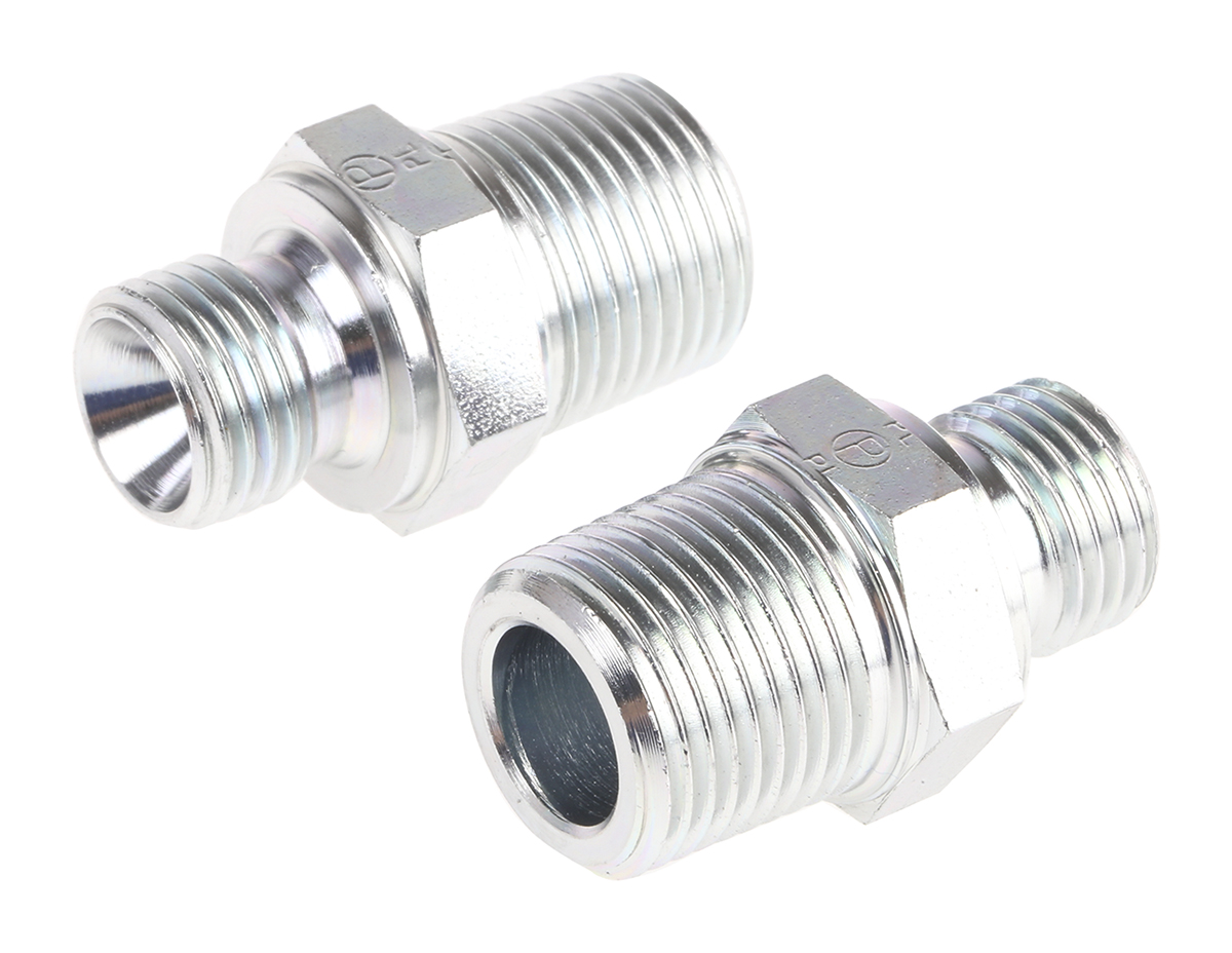 Hydrauliczny adapter gwintowany prosty, Złacze A: G 1/4, Złacze B: R 3/8 męskie, Stal, 315bar