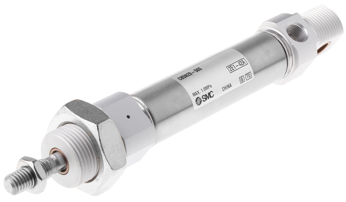 Siłownik pneumatyczny z tłoczyskiem skok: 50mm SMC Ø 20mm jednostronnego działania Action 176mm z amortyzacją