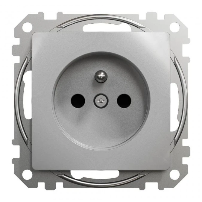14. Gniazdo zasilające 2P+PE z przesłonami torów prądowych, srebrne aluminium,Sedna Design i Elements SDD113011 23.01