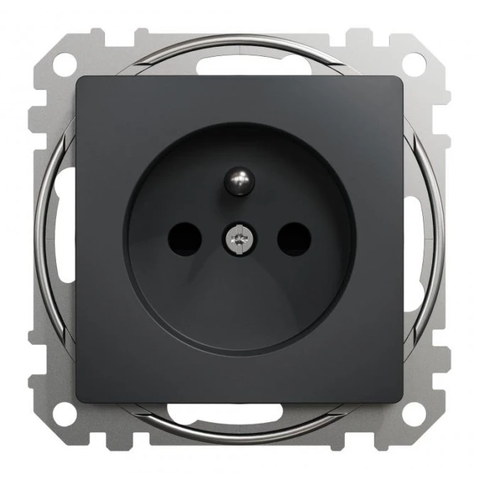 13. Gniazdo zasilające 2P+PE z przesłonami torów prądowych, czarny antracyt, Sedna Design i Elements SDD114011 23.01