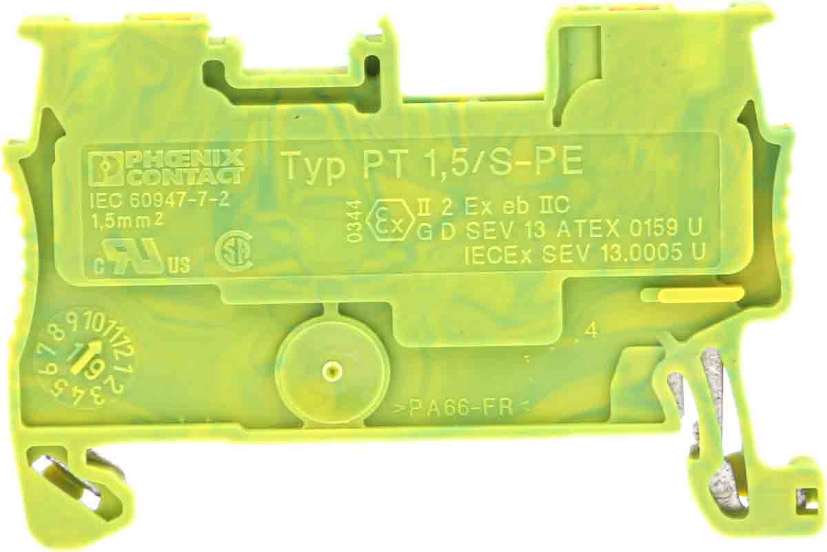 8. Listwa zaciskowa uziemienia Phoenix Contact poziomy: Pojedynczy 26 → 14AWGWciskane PT 1.5/S-PE 70.28