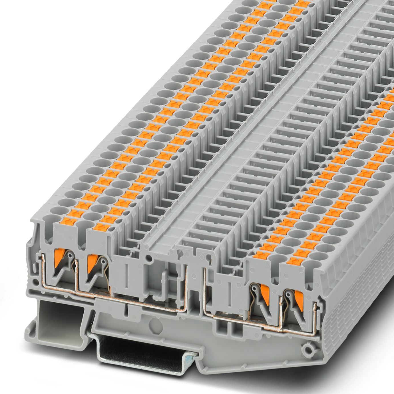Blok zacisków przelotowych Phoenix Contact poziomy: Podwójny 24 → 10AWGWciskane PTTB 4 BU 28A 500 V