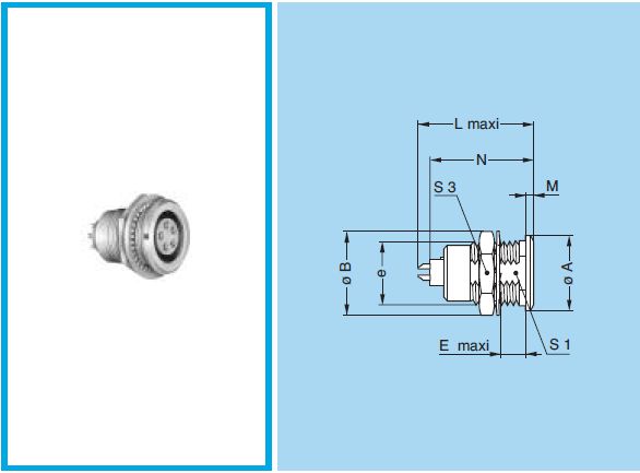 Gniazdo żeńskie serii 2B 4pin IP50 na panel: M15