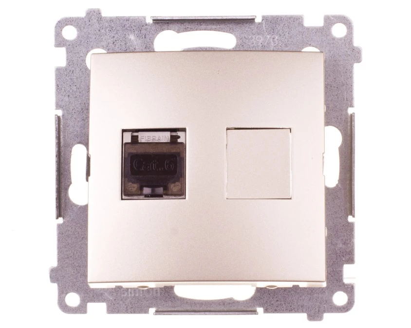 1. SIMON 54 Gniazdo komputerowe RJ45 złoty mat kat.6 ekranowane z przesłoną przeciwkurzową D61E.01/44 KONTAKT SIMON 91.35