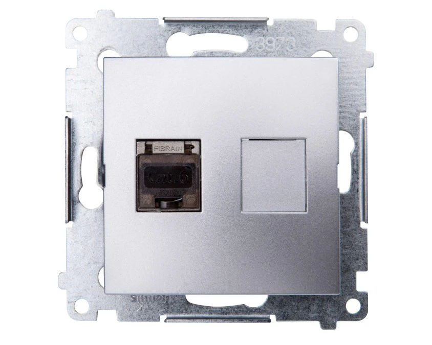 SIMON 54 Gniazdo komputerowe RJ45 srebrny mat kat.6 ekranowane z przesłoną przeciwkurzową D61E.01/43 KONTAKT SIMON