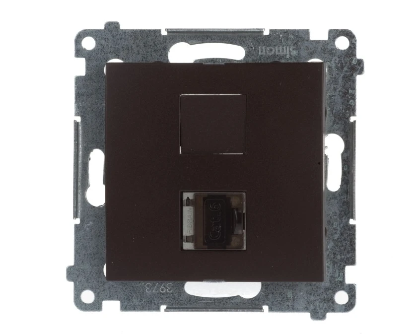 Simon 54 Gniazdo komputerowe pojedyncze RJ45 kat.6 ekranowane z przesłoną brąz mat D61E.01/46