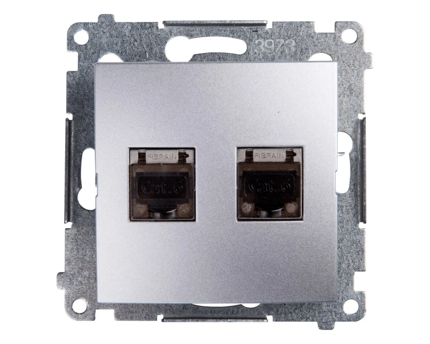 4. SIMON 54 Gniazdo komputerowe podwójne 2xRJ45 srebrny mat kat.6 ekranowane z przesłoną przeciwkurzową D62E.01/43 KONTAKT SIMON 144.62
