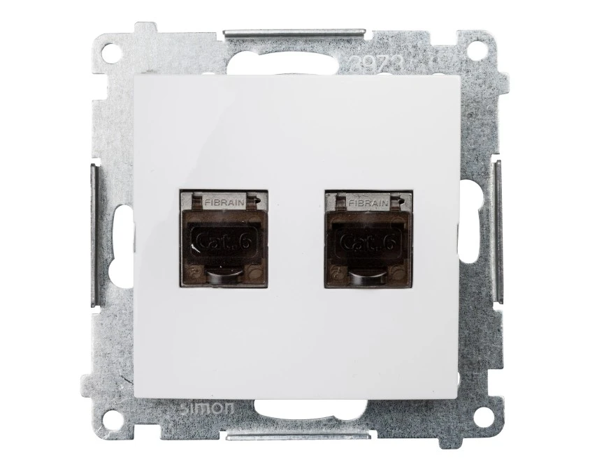 Simon 54 Gniazdo komputerowe podwójne 2xRJ45 kat.6 ekranowane z przesłoną białe D62E.01/11