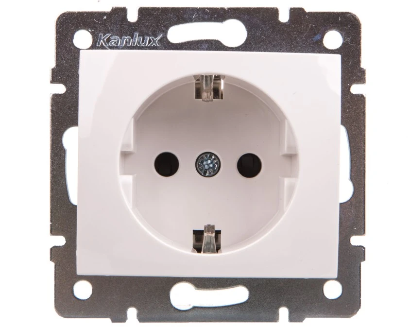 1. DOMO Gniazdo pojedyncze Schuko ochrona styków śrubowe 16A 250V biały 011240102 24733 22.31