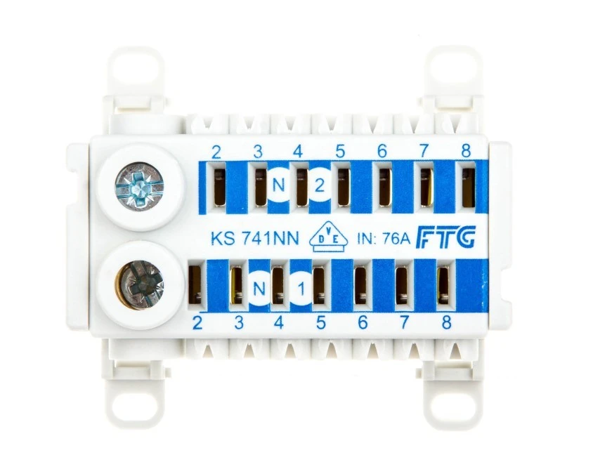 2. Blok rozdzielczy CU ECB 2-polowy 2x25mm2 , 2x (7x4mm2) niebieski/zielony KS741NPE 50.11