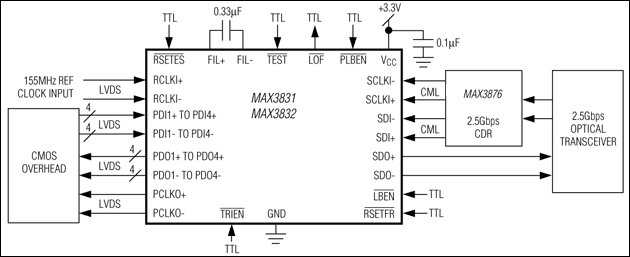 3.3V, 2.5Gbps, SDH/SONET, 4-Channel Interconnect Mux/Demux ICs with Clock Generator