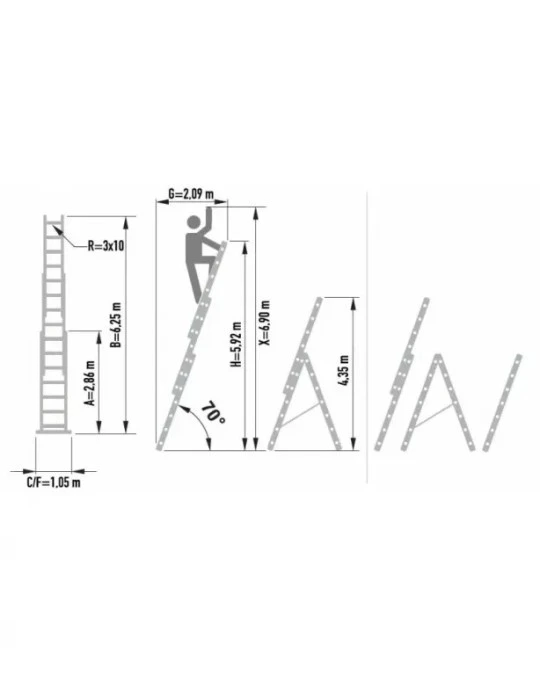 Drabina aluminiowa 3-elementowa 3x10 ALVE 7610
