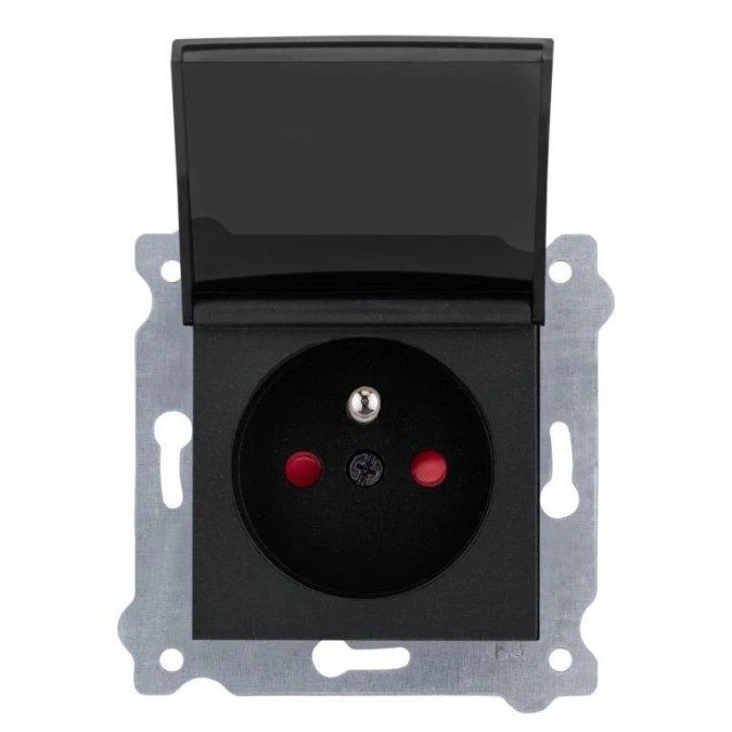 Gniazdo z uziemieniem (Typ E) przesłonami torów prądowych i pokrywą gniazda 16A 250V Czarny Metalik 247/14E EXEN