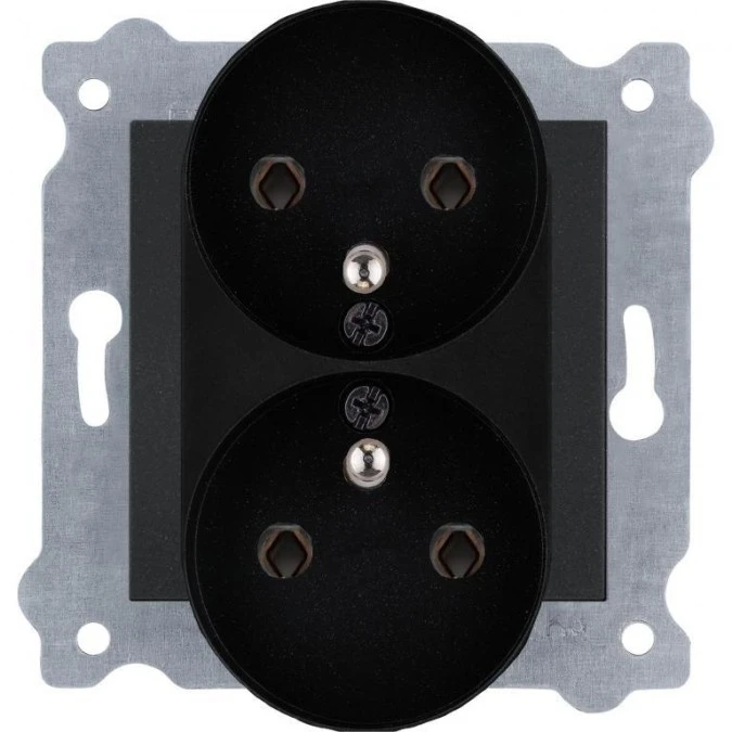 Gniazdo podwójne z uziemieniem (Typ E) i przesłonami torów prądowych 16A 250V Czarny Metalik 246/14E EXEN