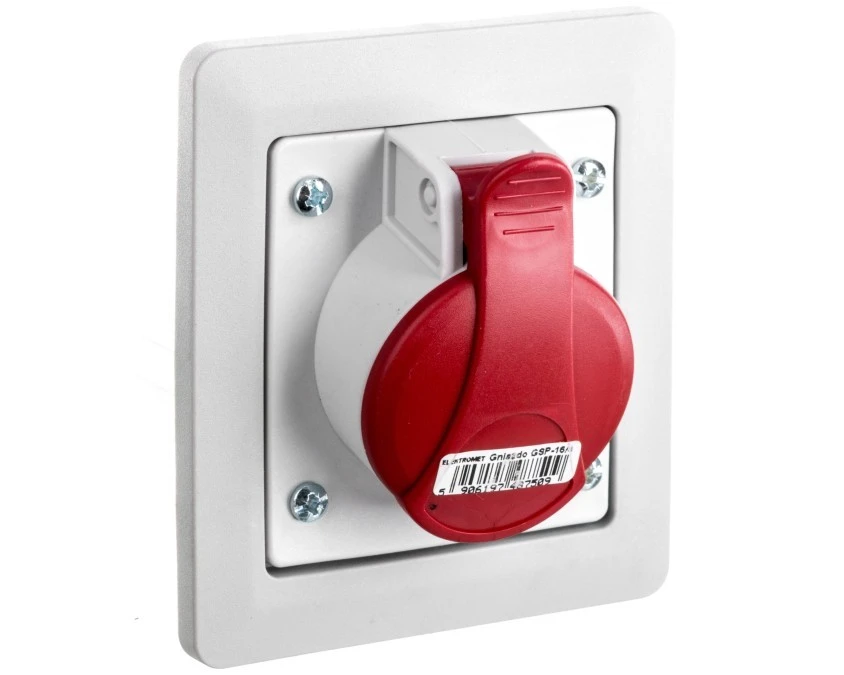 Gniazdo Skośne Podtynkowe Z Ramką 5P 16A 400V Czerwone Ip Gsp 16/5 Ip-44 921850