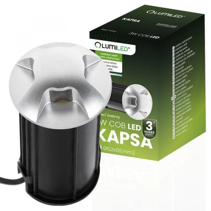 Lampa Najazdowa Dogruntowa Schodowa 3x3W LED IP44 Srebrna KAPSA LUMILED